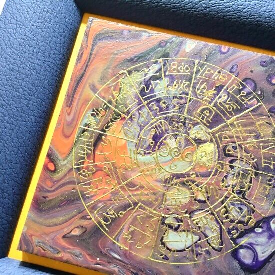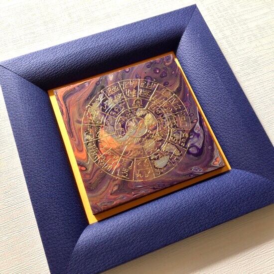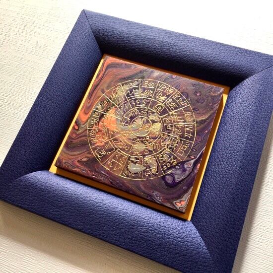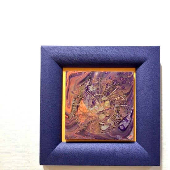 アートのような美しさが詰まった、フルイドアートのMDFミニ。手作業で丁寧に制作された一点ものの作品で、その流れるような色合いは心を癒します。そのフルイドアートに龍体文字フトマニ図を描いています。