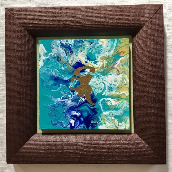 フルイドアート作品本体はMDF材にアクリル絵具で描いています。