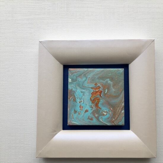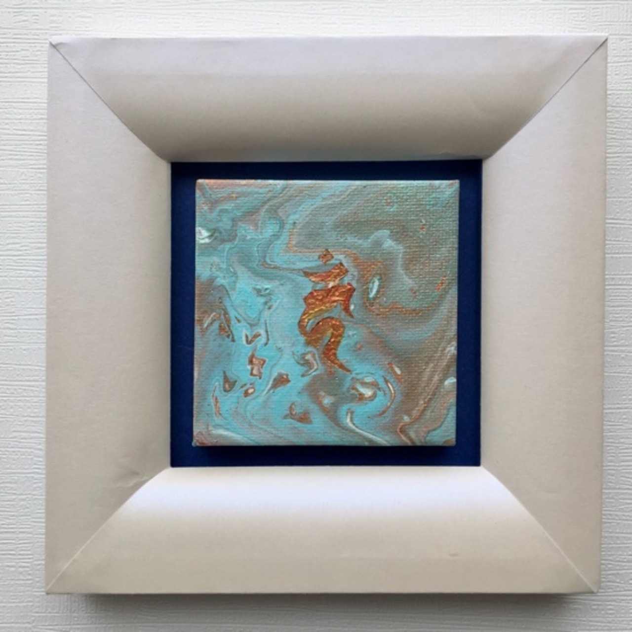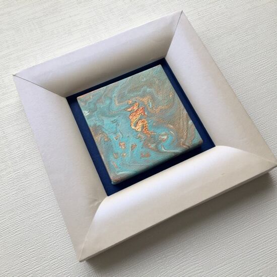 フルイドアート作品本体は小さなキャンバスにアクリル絵具で描いています。