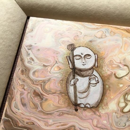 この作品は、静かに見守る地蔵菩薩の癒しの表情が印象的な一枚。部屋の雰囲気を変えたいときや、小さな癒しを取り入れたいときにおすすめです。 ぜひ、この地蔵菩薩のフルイドアートを飾って、あなたのお部屋にやすらぎを。