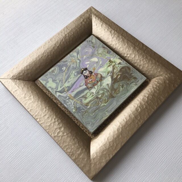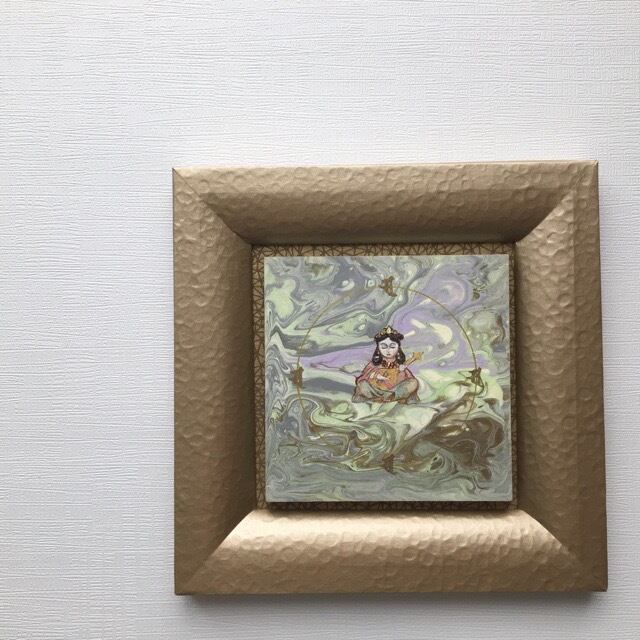 弁財天さまの愛らしいイラストをフルイドアートに仕上げた、額装タイプ作品です。オブジェとてお部屋のインテリアにいかがでしょうか。