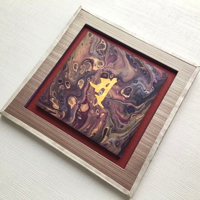 フルイドアート作品本体はMDFにアクリル絵具で描いています。