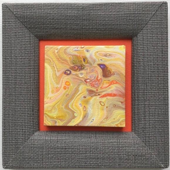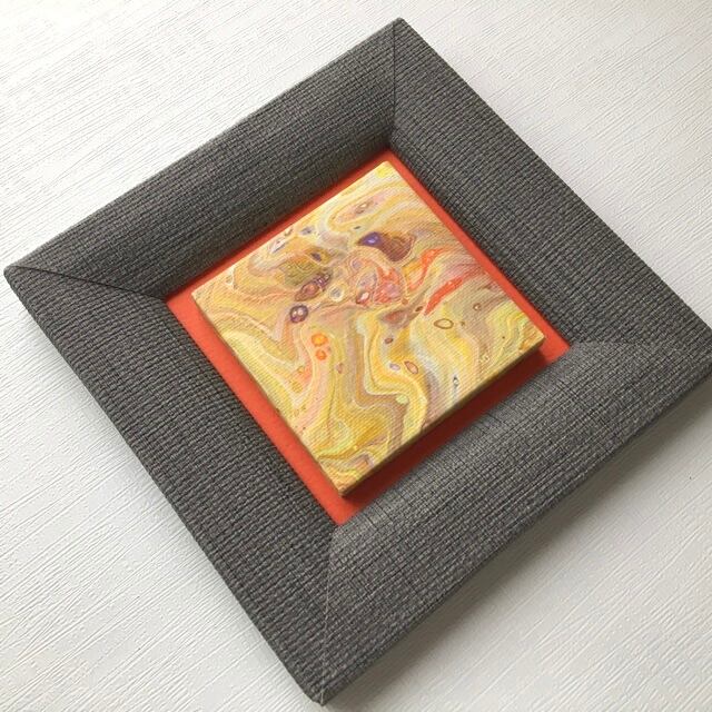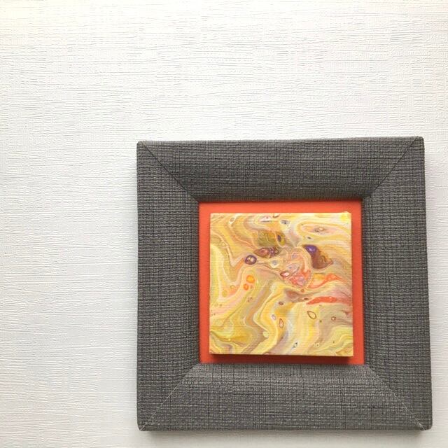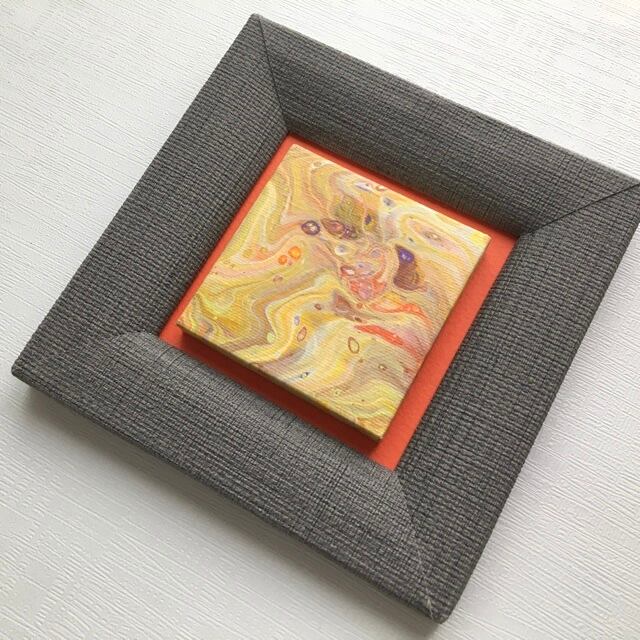 フルイドアート作品本体は小さなキャンバスにアクリル絵具で描いています。