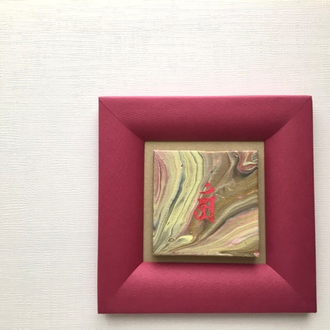 フルイドアート作品本体は小さなキャンバスにアクリル絵具で描いています。