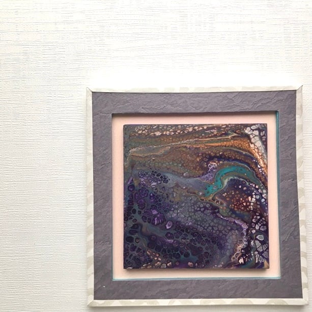 フルイドアート作品本体はMDFにアクリル絵具で描いています。