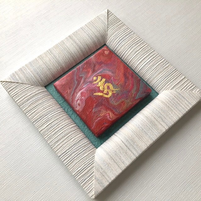 フルイドアート作品本体は小さなキャンバスにアクリル絵具で描いています。