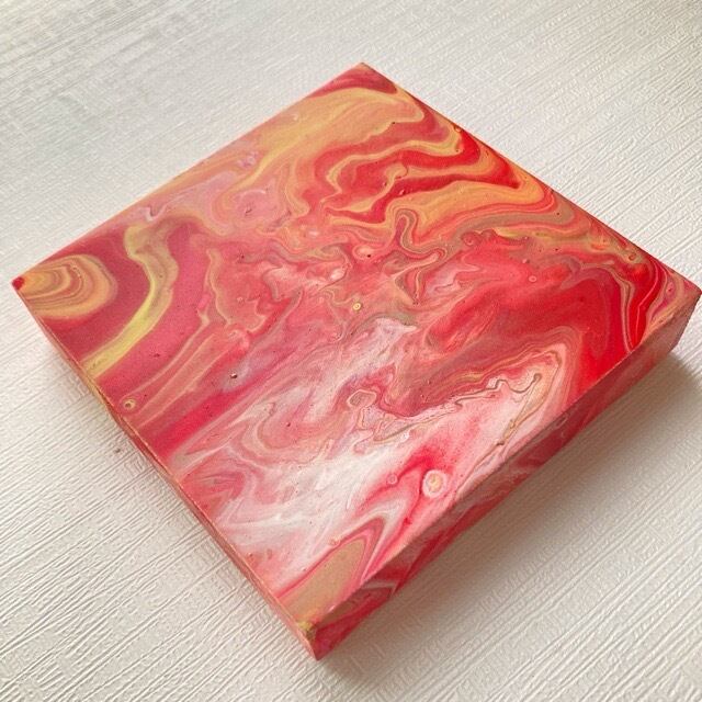 色合いや絵具の混ぜ方などを試行錯誤しながら、ひとつひとつ制作されているため、同じものは二つとありません。 このフルイドアートの美しさを、是非あなたのお部屋でもお楽しみください。