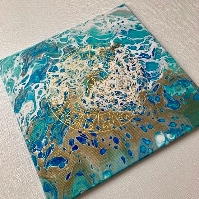 アートのような美しさが詰まった、フルイドアートのキャンバスボード。手作業で丁寧に制作された一点ものの作品で、その流れるような色合いは心を癒します。